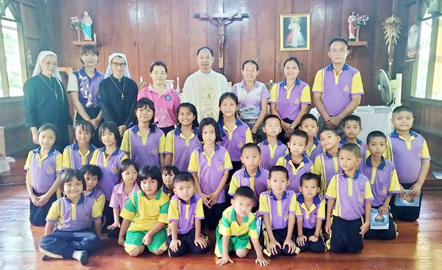 ยินดีให้ครูคำสอน เข้าไปจัดกิจกรรมตามตารางเวลาของโรงเรียนได้... ทางวัดจึงจัดทำโครงการเพื่อให้เด็กและเยาวชนตามหมู่บ้านที่มาเรียนในโรงเรียน มีโอกาสเรียนคำสอน โดยจะจัดในวันเสาร์ รับนักเรียนที่อยู่ตามโรงเรียน และตามหมู่บ้านในละแวกเดียวกันมารวมกัน โดยมี
